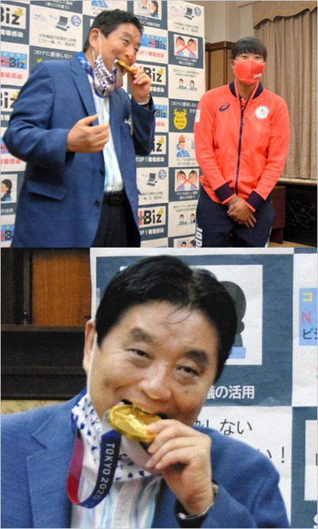 本当にくだらないといいますか、情けないといいますか、とんでもない市長が登場しました。なんと、金メダルをとったアスリートさんがその報告をしにいくというイベント(まあ、これ自体が必要ないと思いますが)で、市長が金メダルをかじるという行動をしたのです。